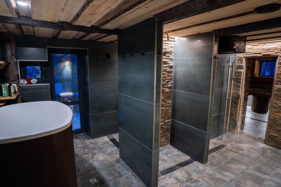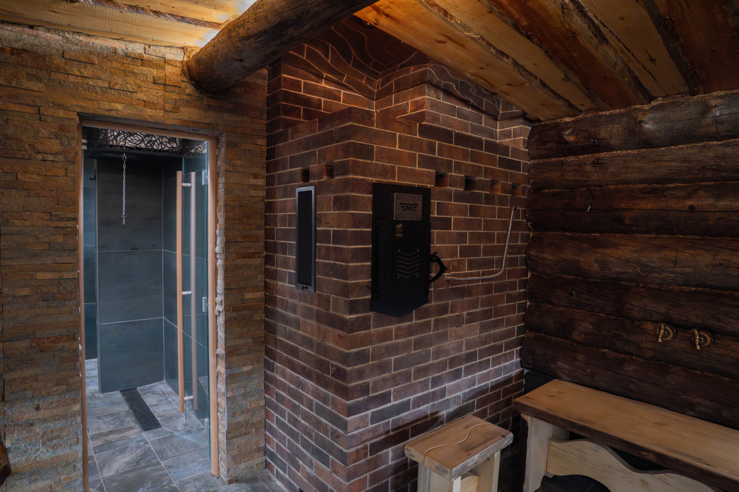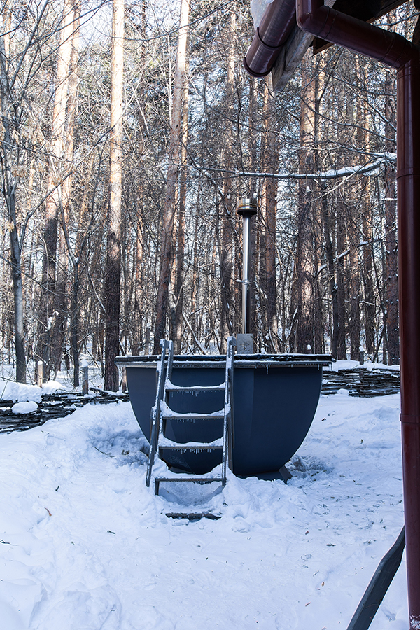 Одноэтажный банный домик — веранда, комната отдыха, 2 спальни, парная, джакузи*, помывочная с обливным ведром, телевизор, караоке, фен. Купель (в летний период), мангальная зона.